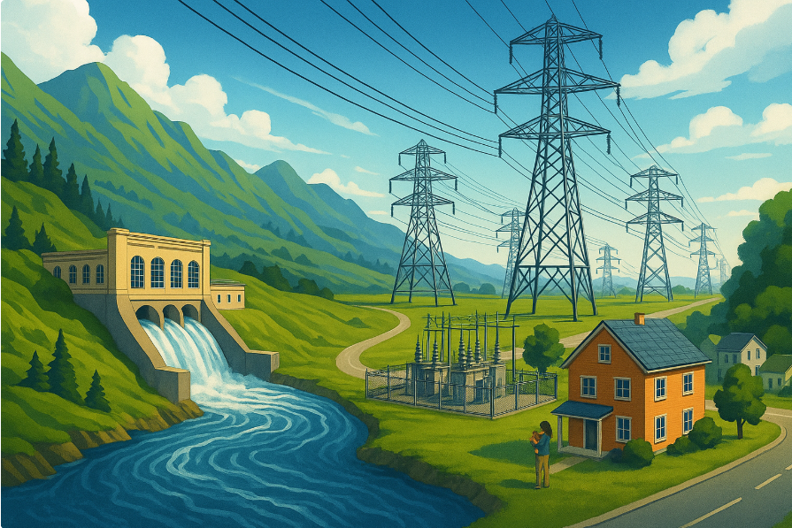 Wasserkraft ist eine Form der Energieerzeugung, die die kinetische Energie von fließendem Wasser nutzt, um Strom zu erzeugen.